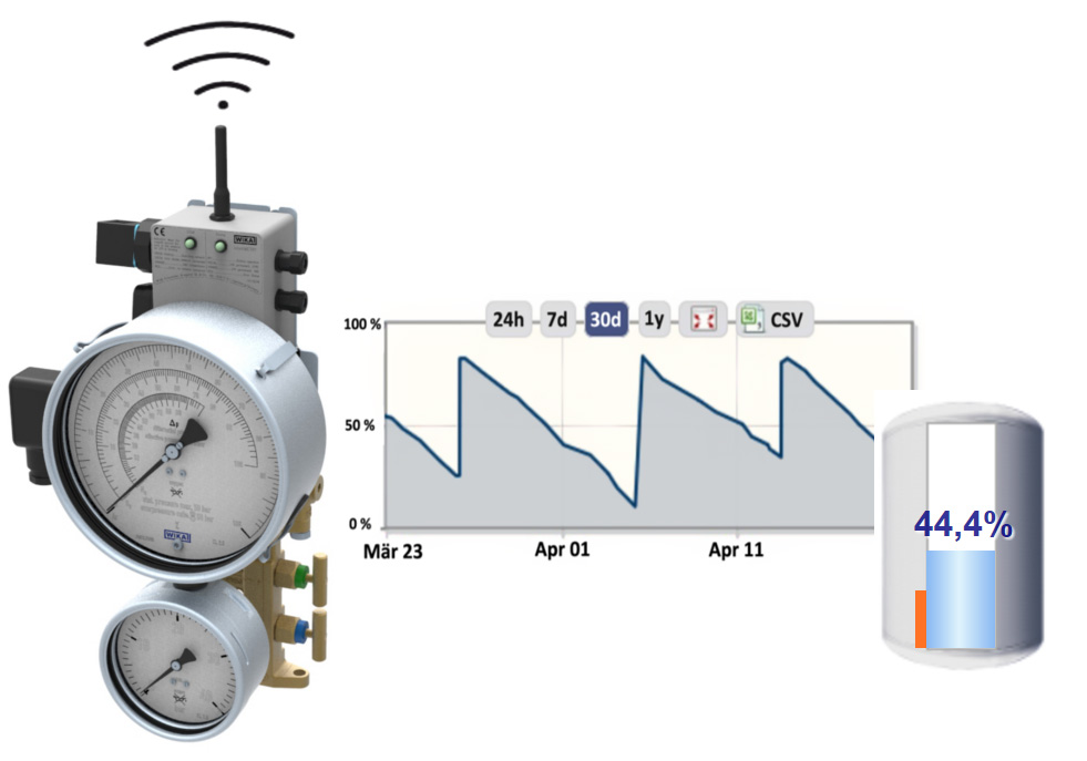 For level monitoring in cryogenic tanks, WIKA is currently the only manufacturer of a complete system. It combines the mechanical and electrical recording of the measured values locally with a decentralised control via the intelliMETRY remote data transfer module.